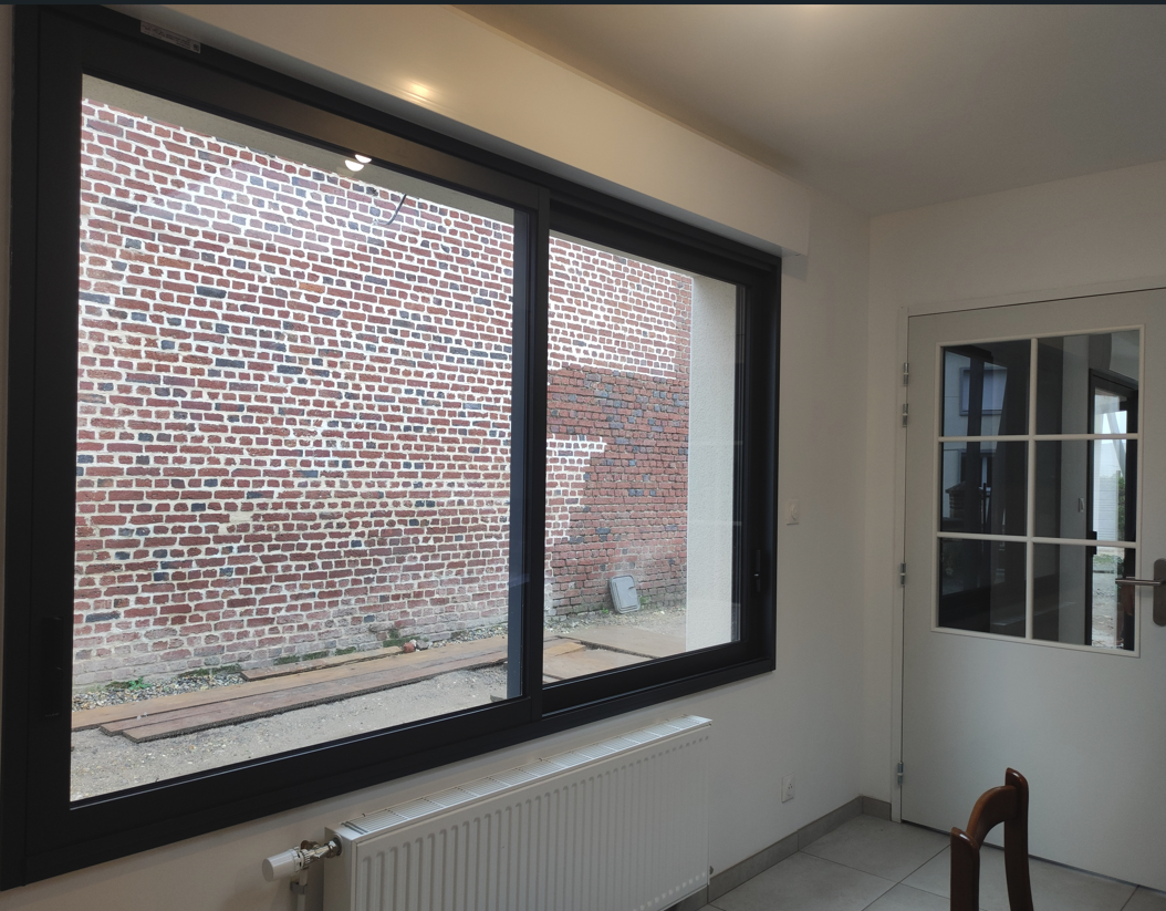 Les menuisiers ont posé les portes et fenêtres extérieures aluminium avec volet roulant motorisé. Les plaquistes se sont chargés des doublages isolants intérieurs, des cloisons et plafonds.